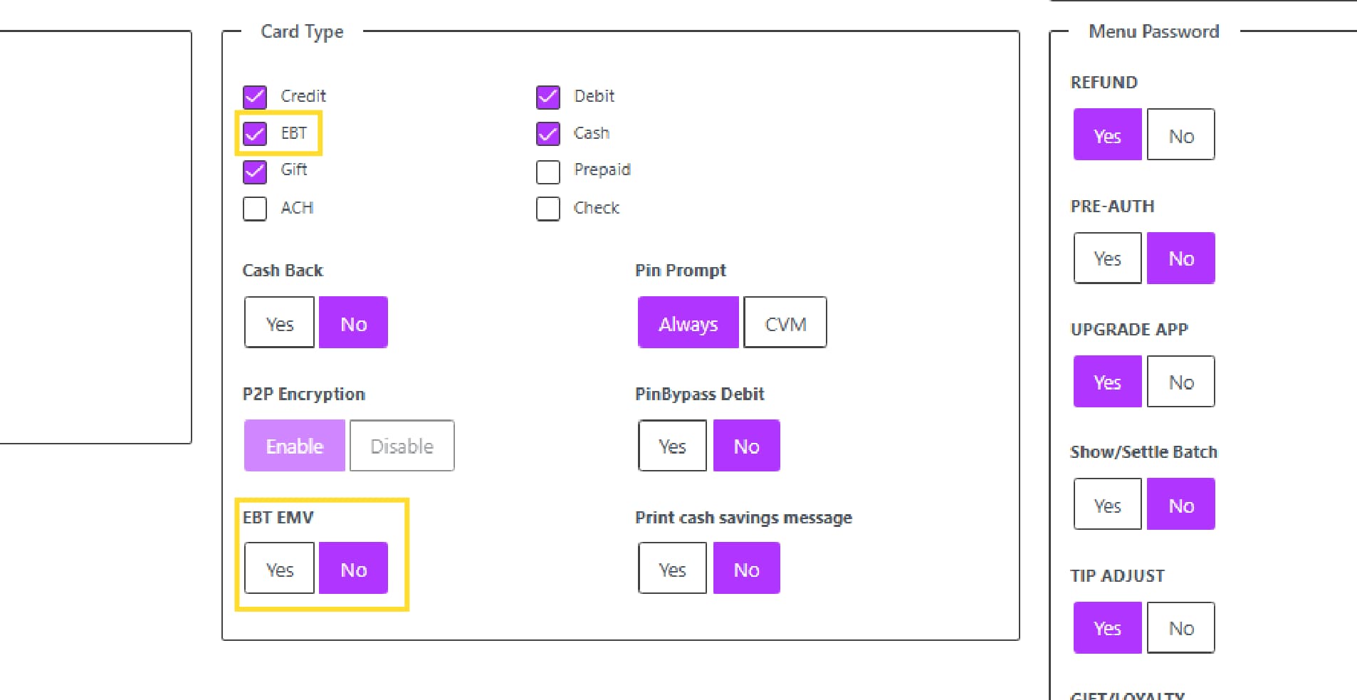 Click on Edit Parameter → Transactions, then set EBT EMV to “Yes”.