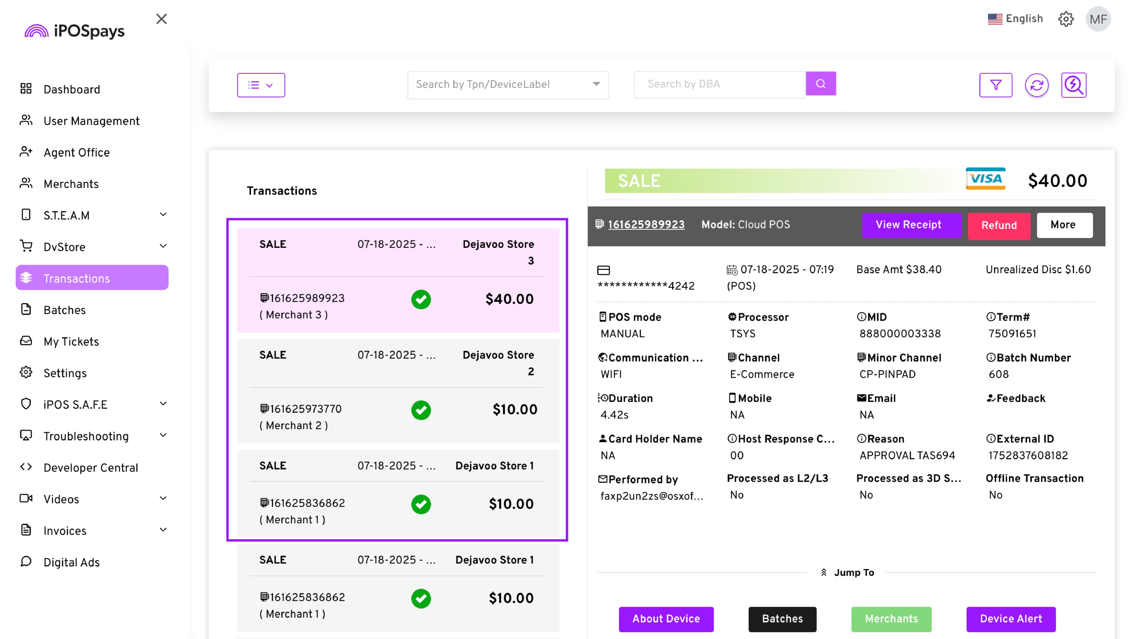 Each store’s transactions remain isolated and accessible only by that store’s merchant credentials. This ensures secure, role-based access even when multiple MIDs are managed in one system.