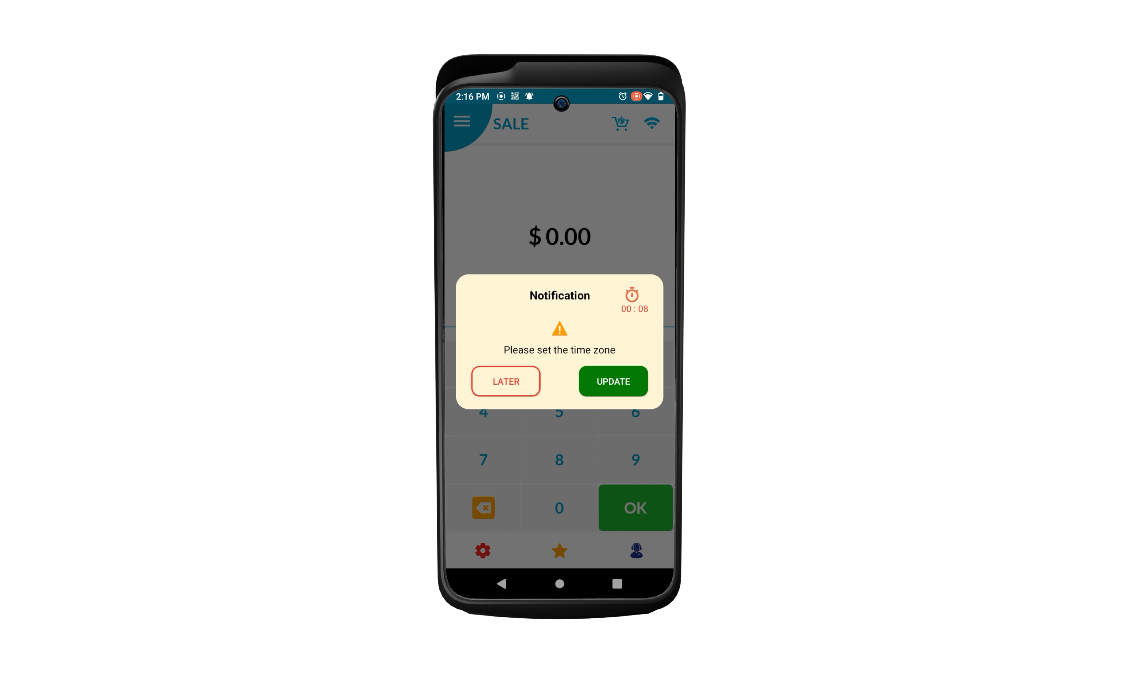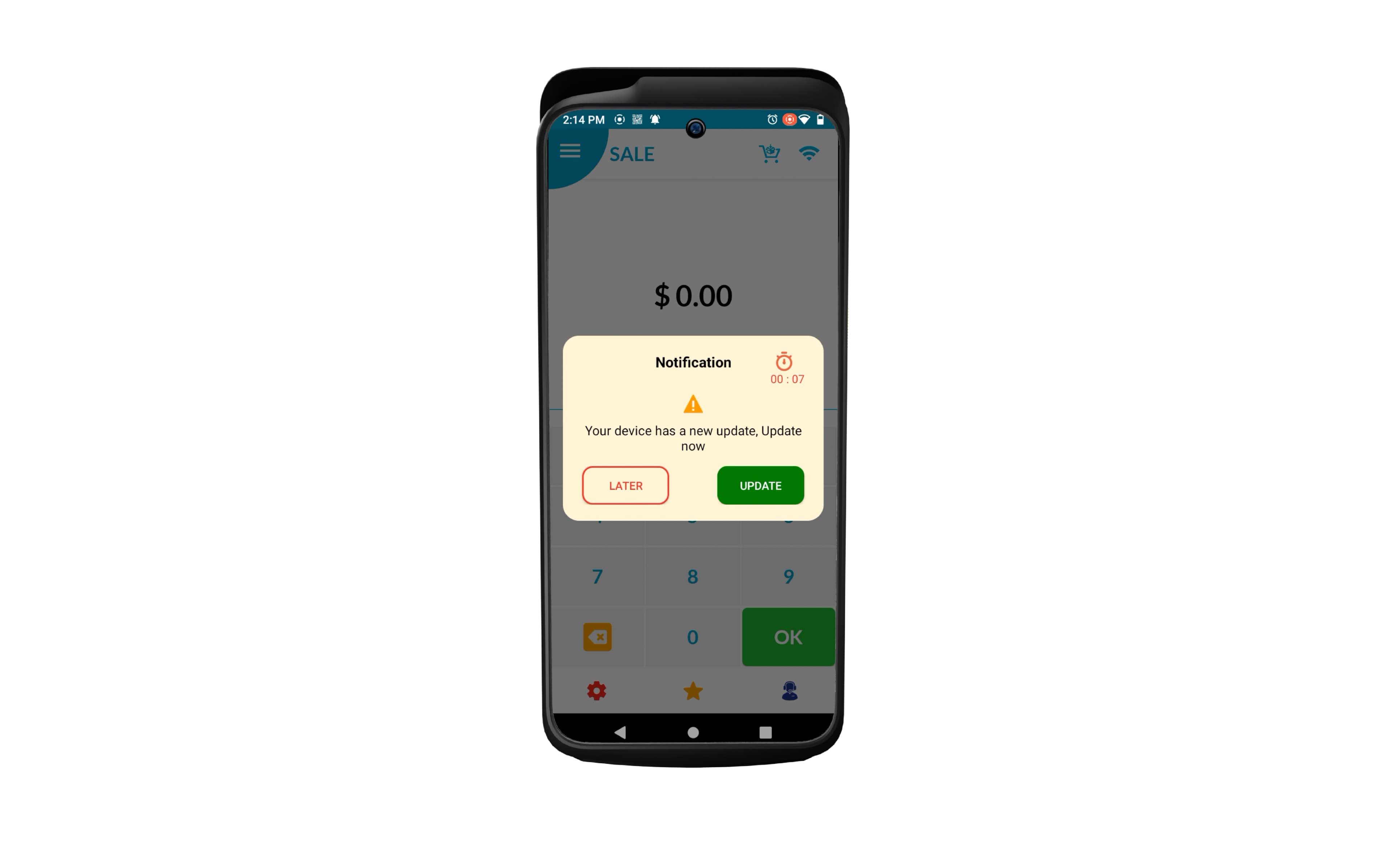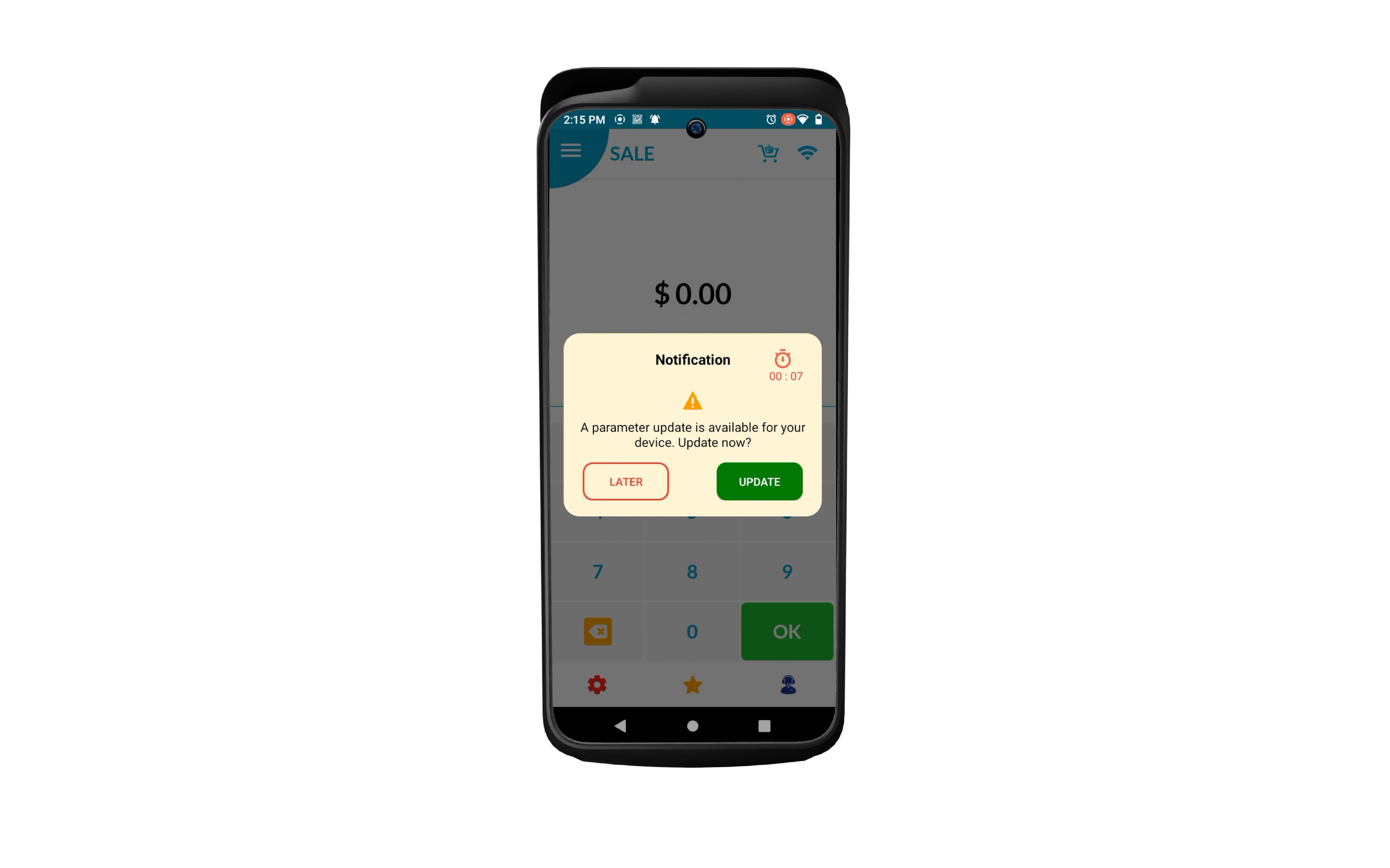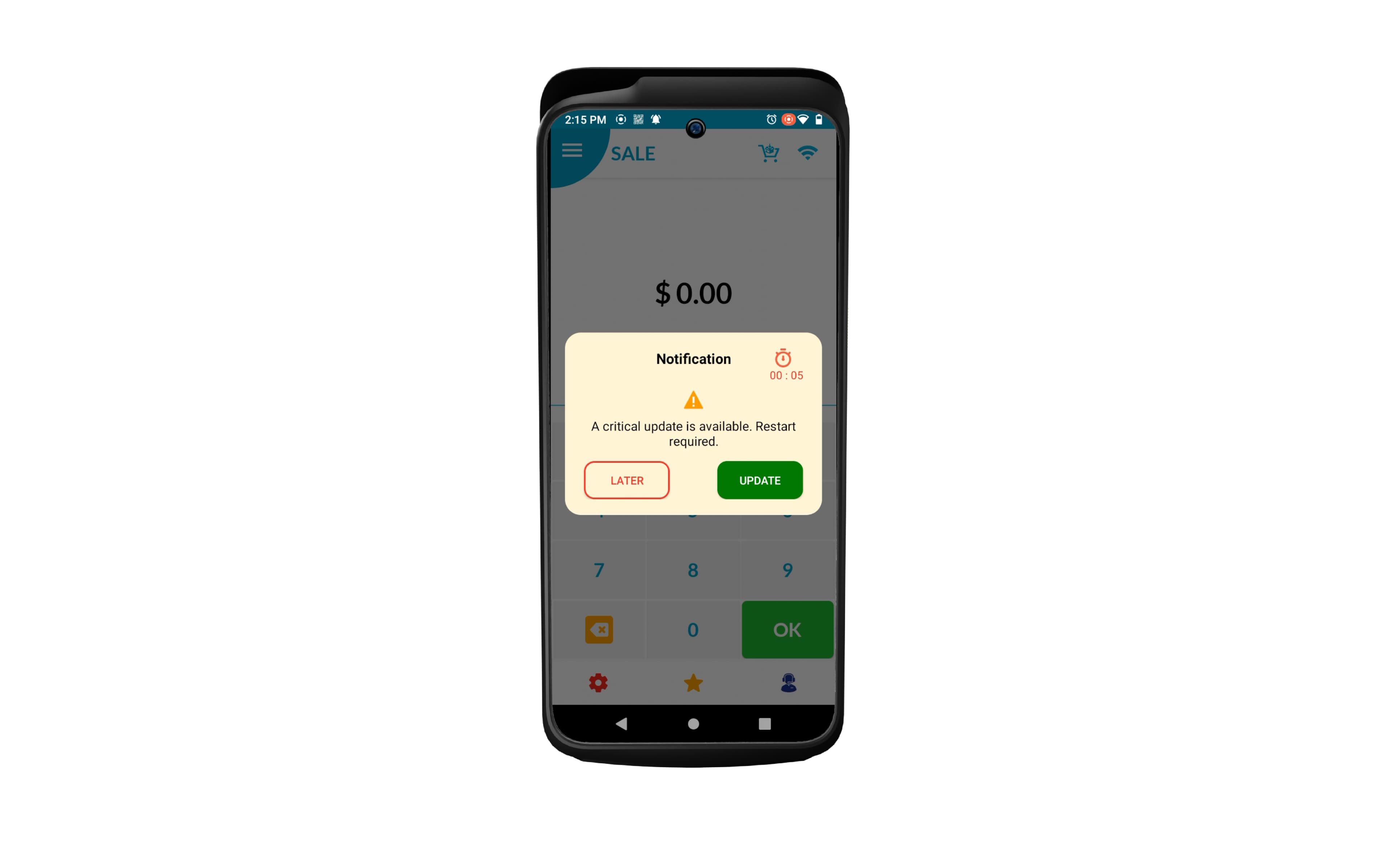 If you leave the banner untouched, the terminal will automatically execute the command once the timer runs. You can also tap UPDATE to immediately execute the command or click LATER to ignore it.