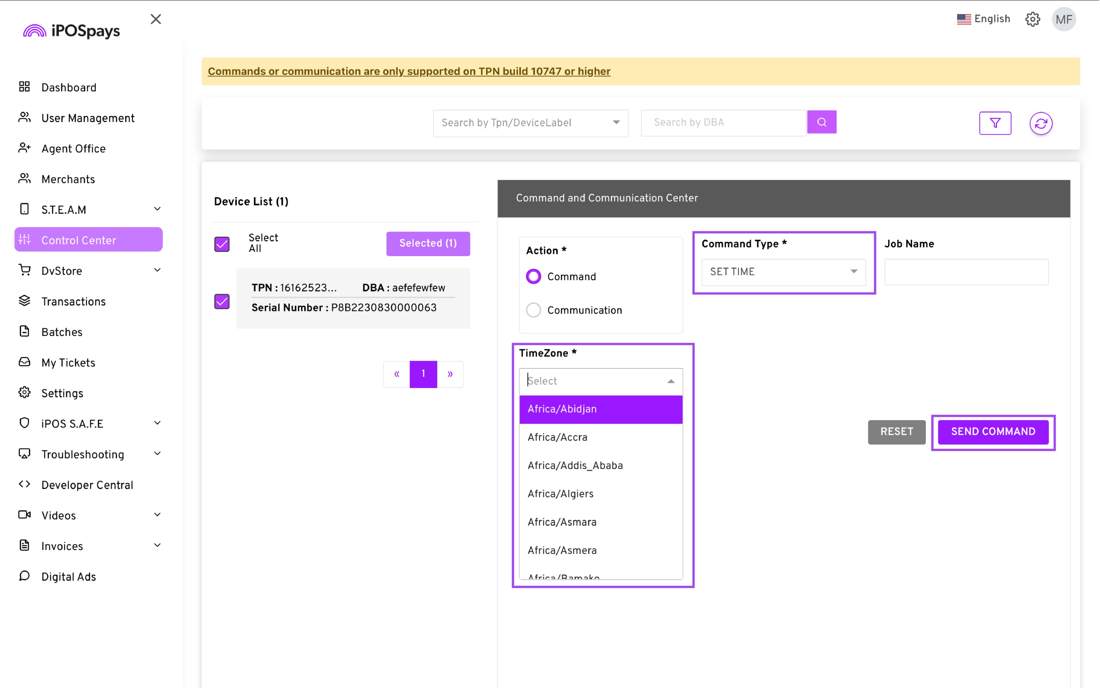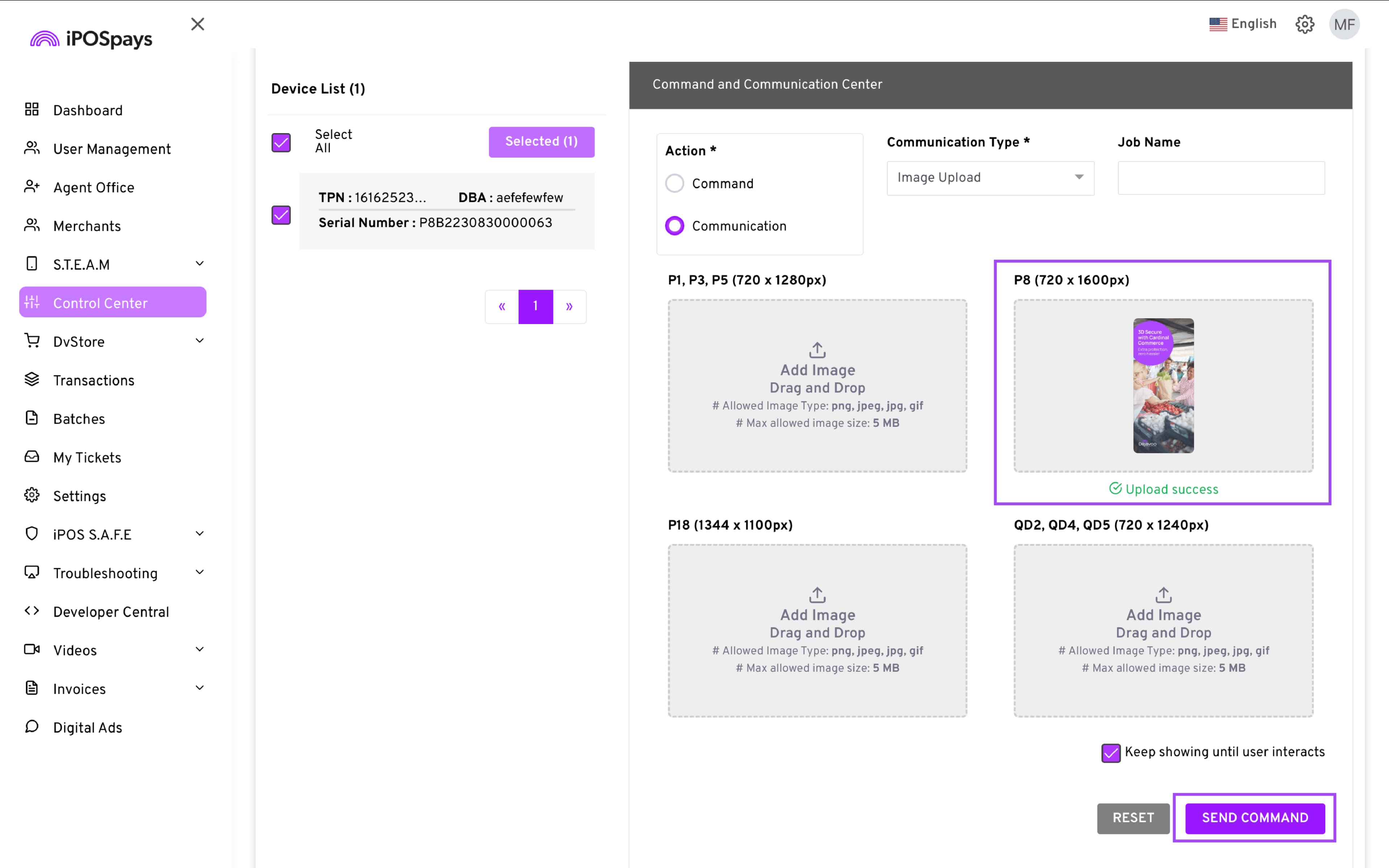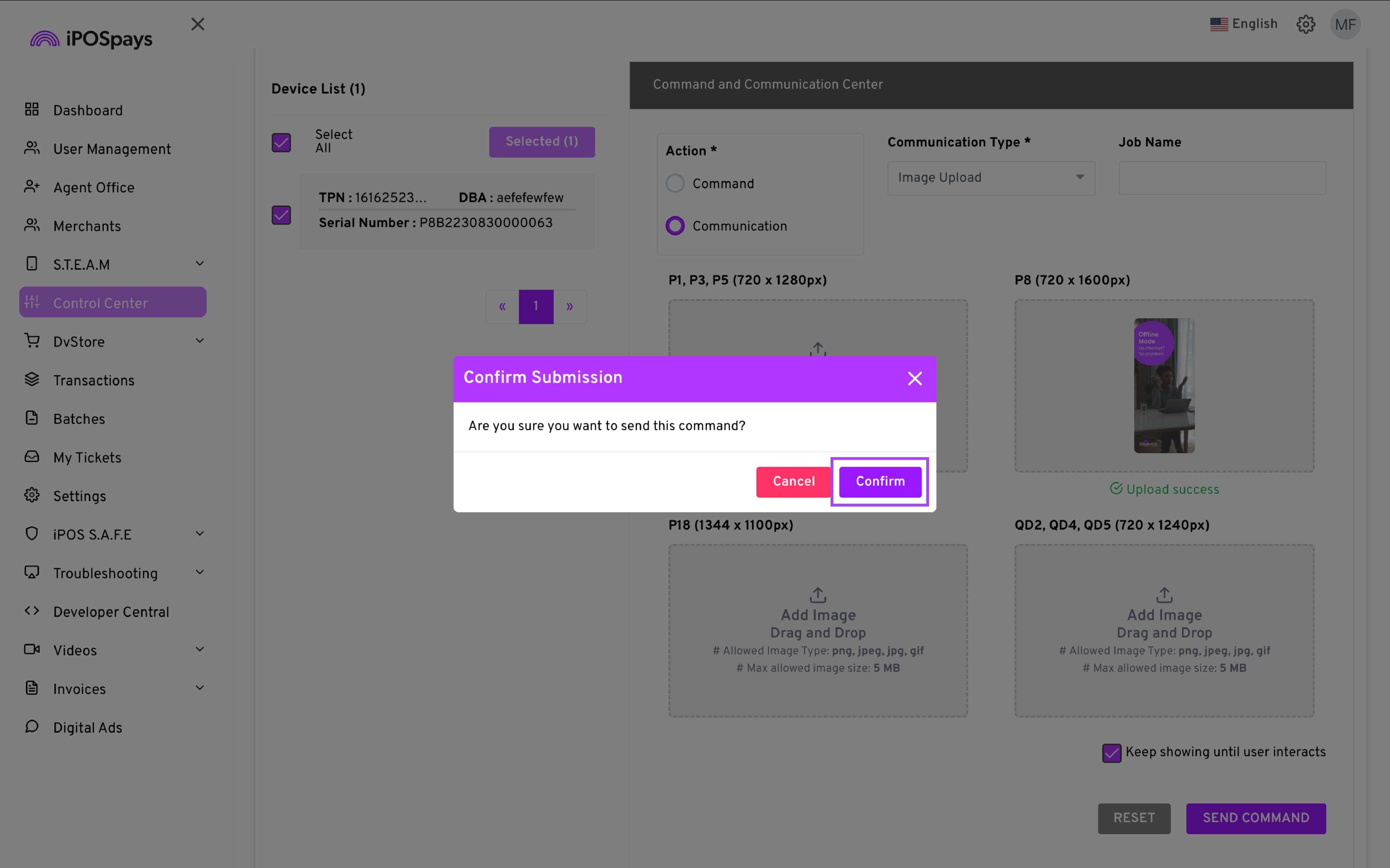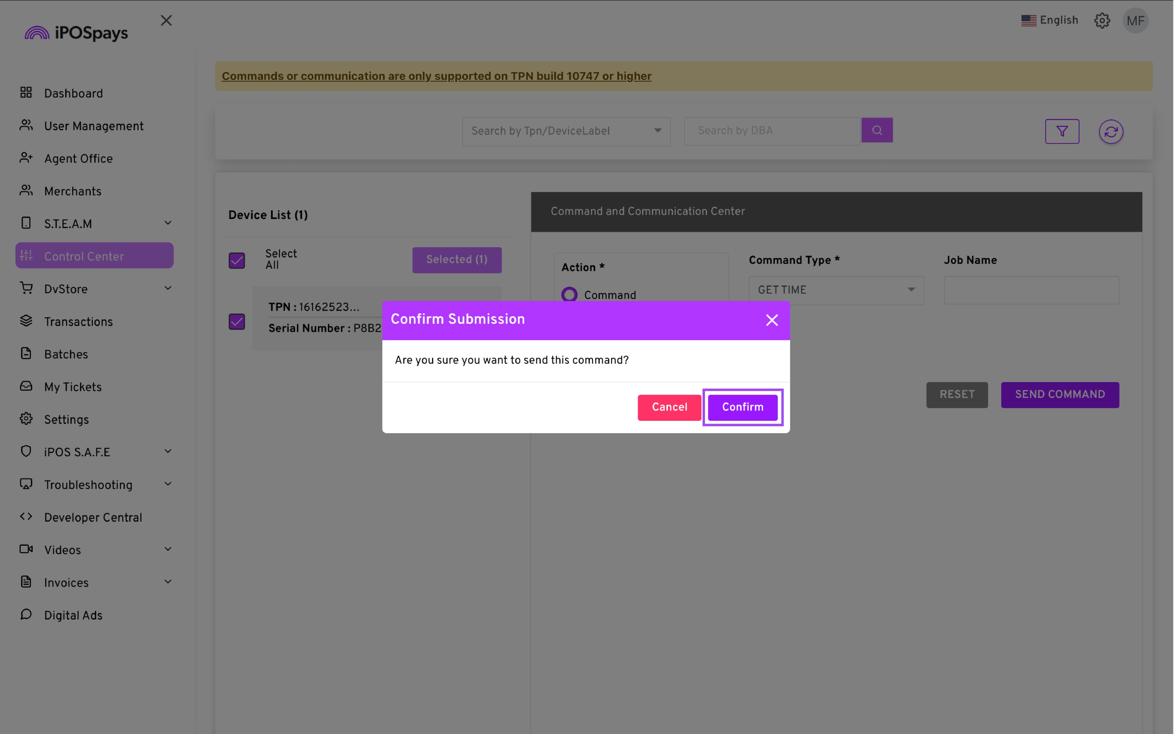The Command and Communication Center is a feature on the iPOSpays portal that enables ISOs (Independent Sales Organizations) to remotely control merchant payment terminals and communicate with them by sending commands or messages.