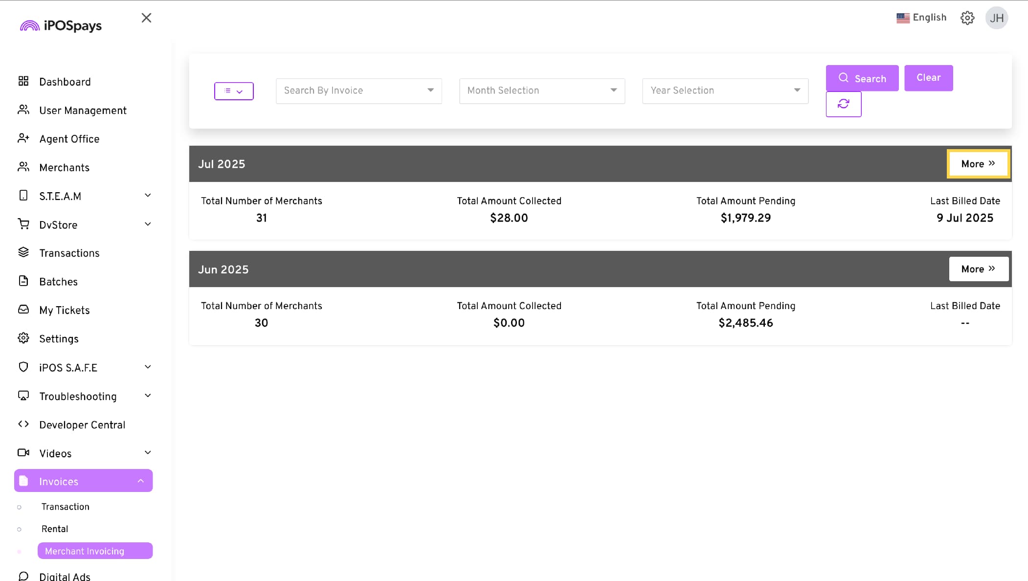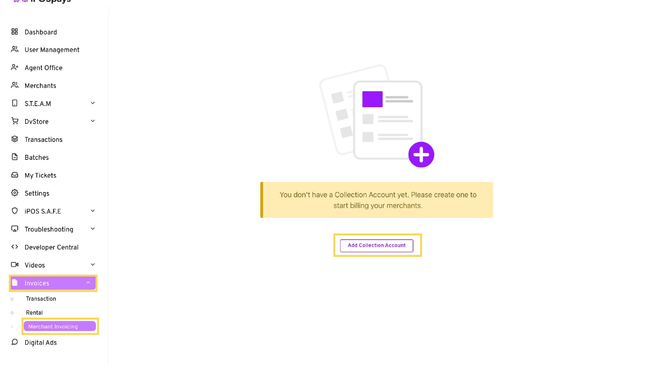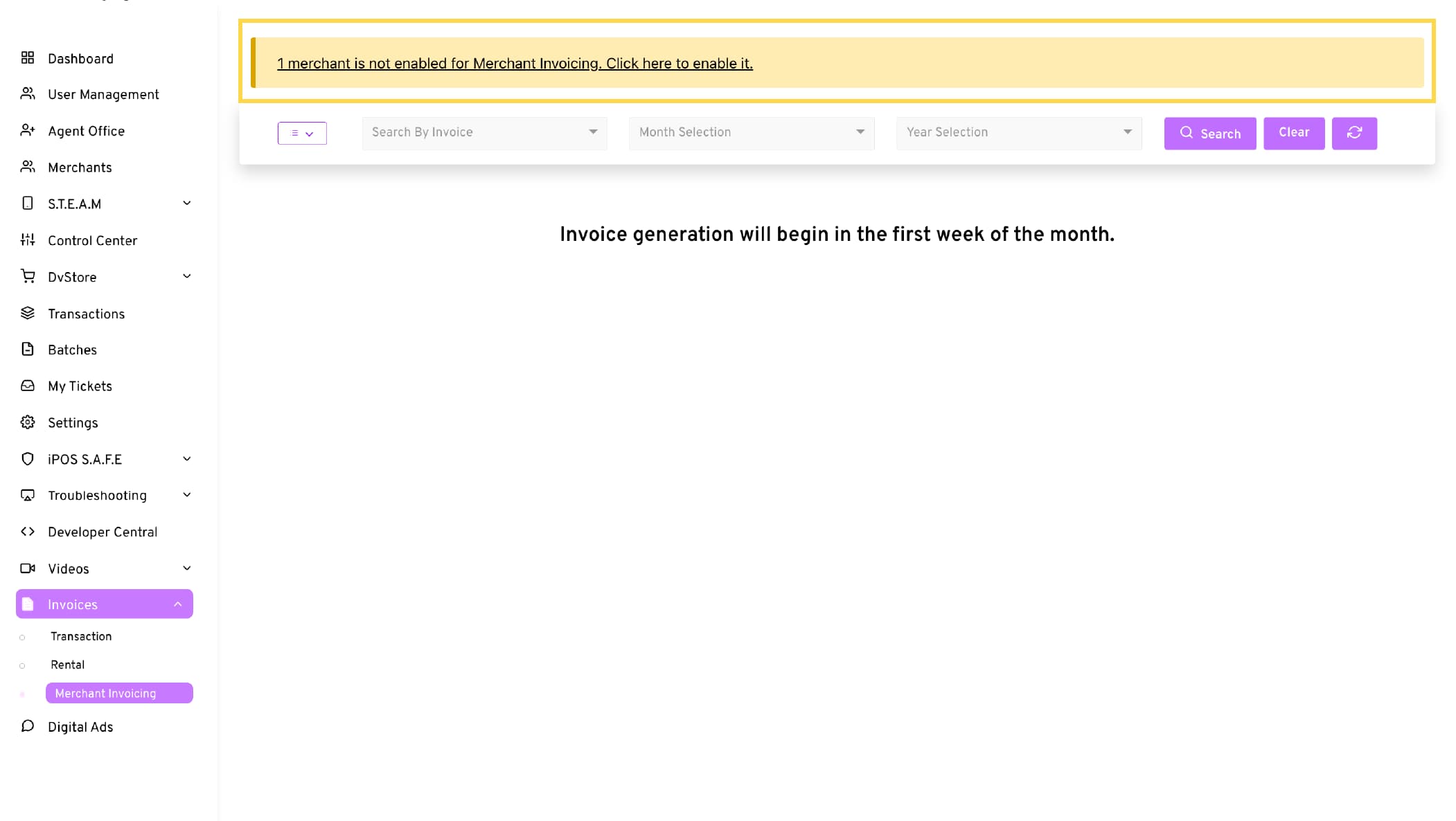 Before you begin: If you do not see Merchant Invoicing under Invoices in your ISO account sidebar, it means this feature has not been activated for your account. Contact your Dejavoo representative to get it enabled.