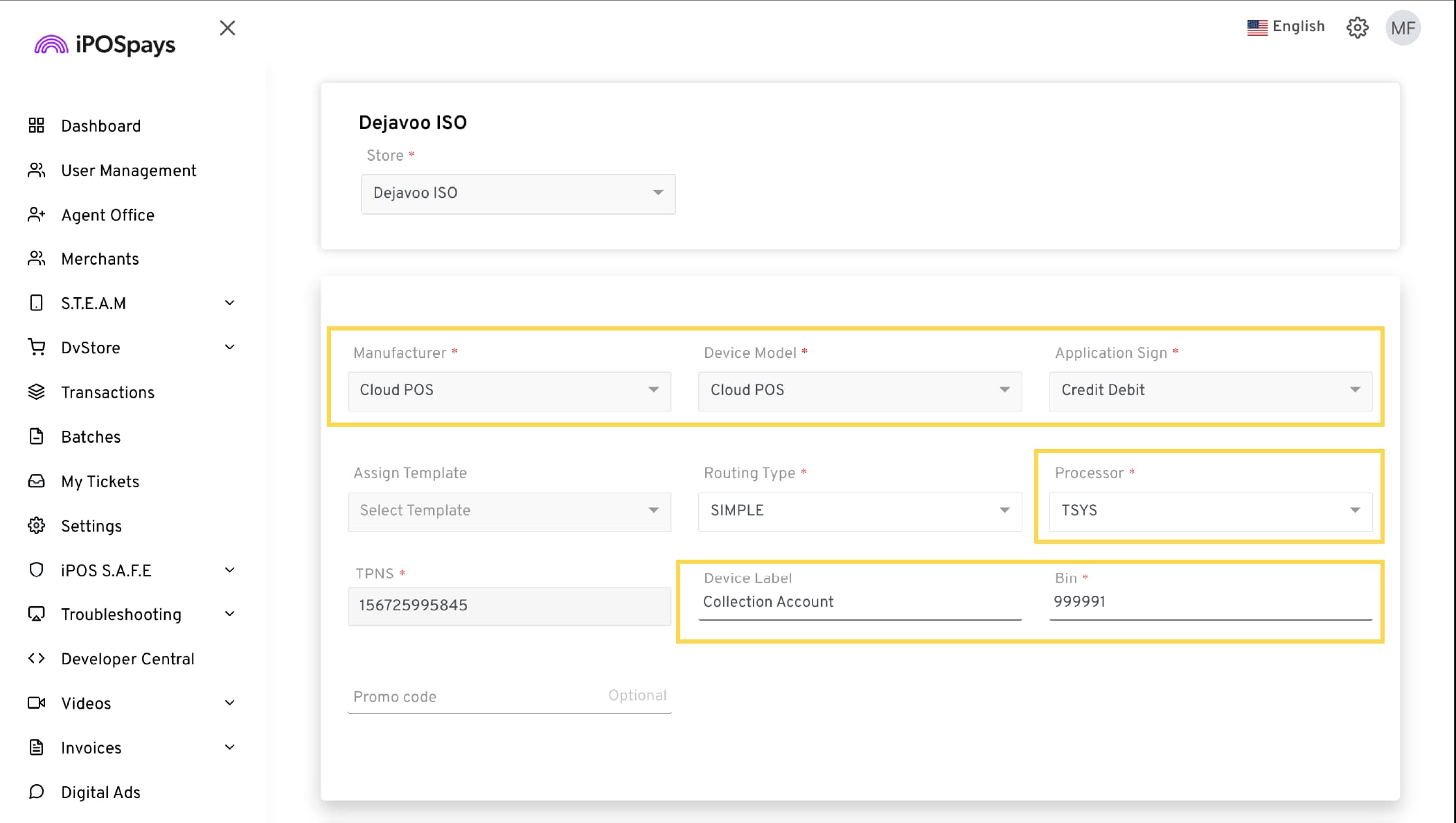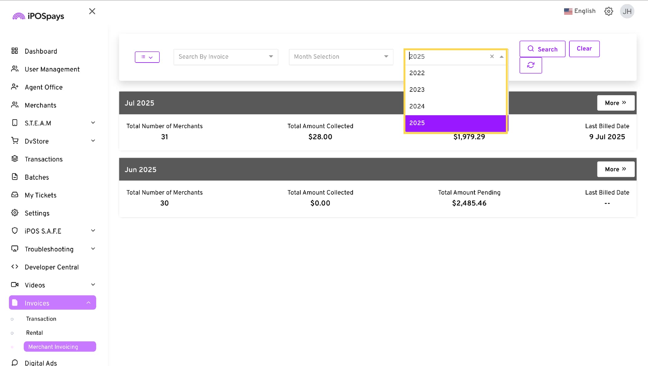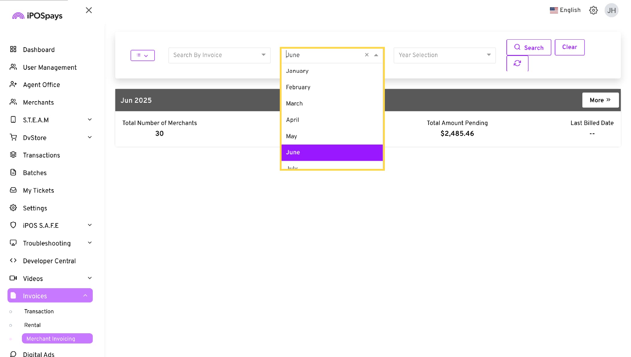 Before you begin: If you do not see Merchant Invoicing under Invoices in your ISO account sidebar, it means this feature has not been activated for your account. Contact your Dejavoo representative to get it enabled.