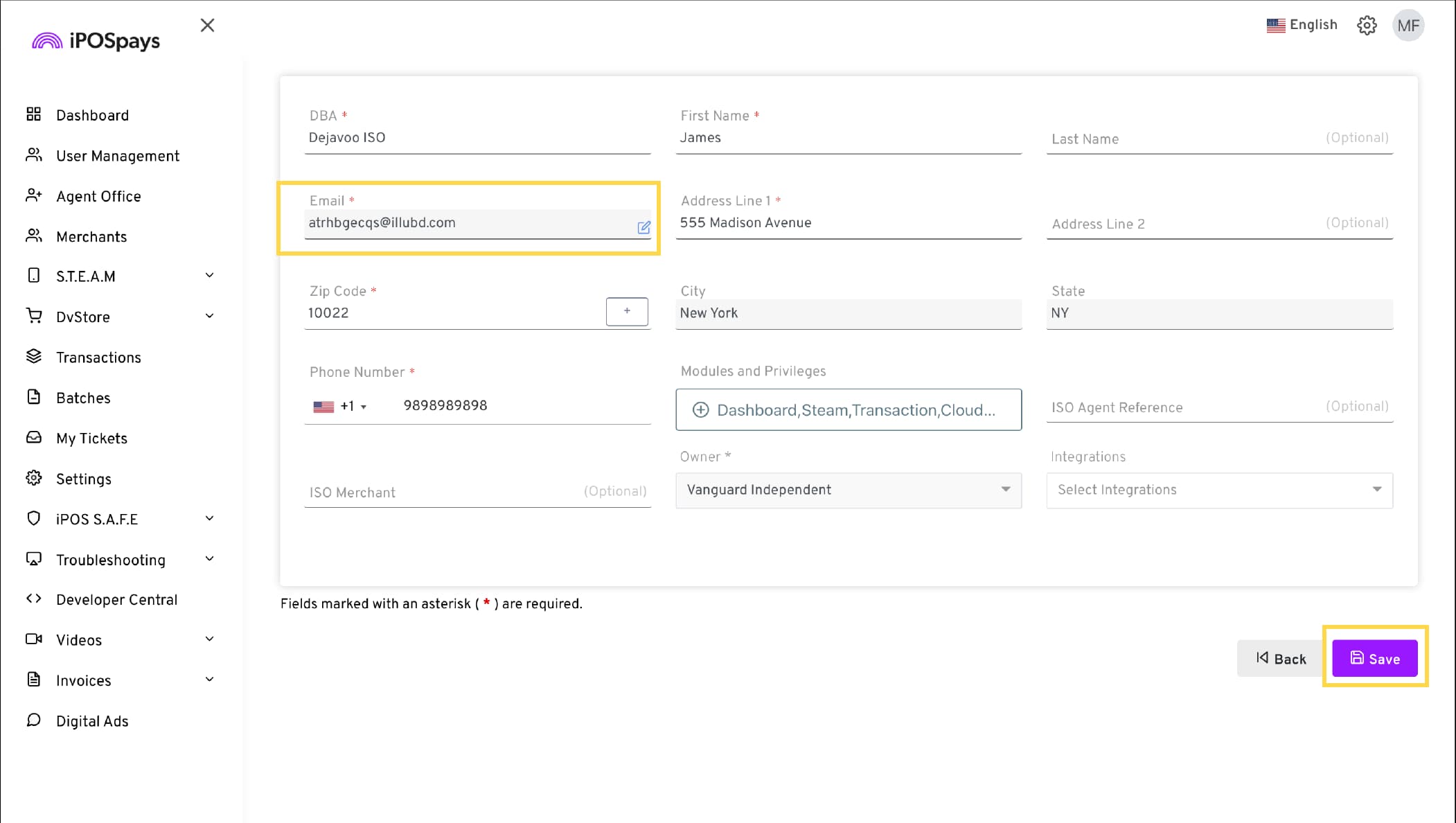 You’ll be taken to the Merchant Info section. The details from your ISO account setup will be prefilled.