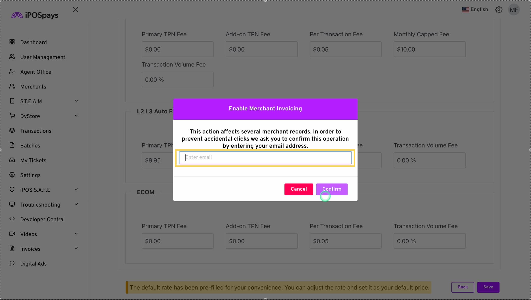 You can enable/disable merchant invoicing for some of your merchants by following the steps below.