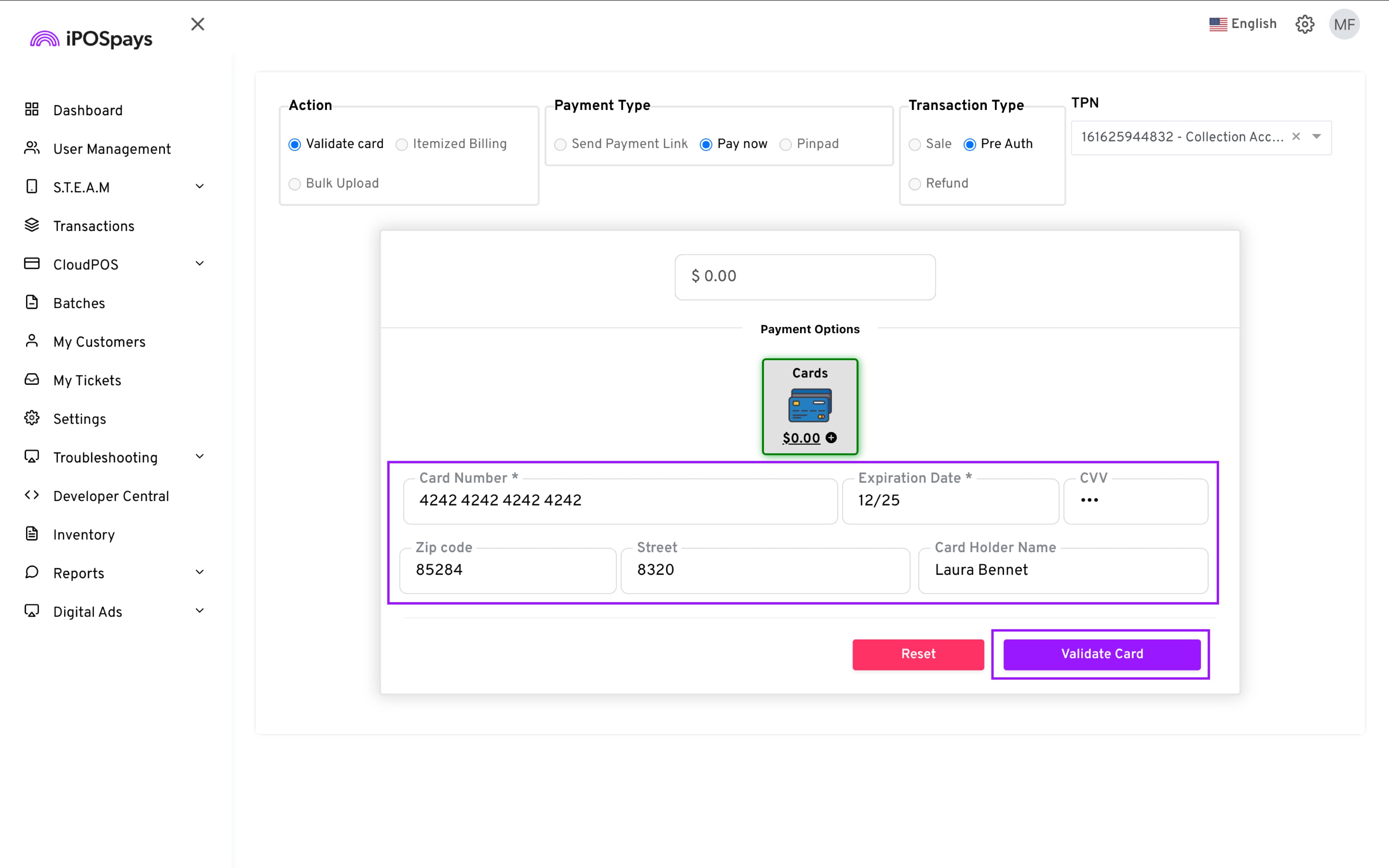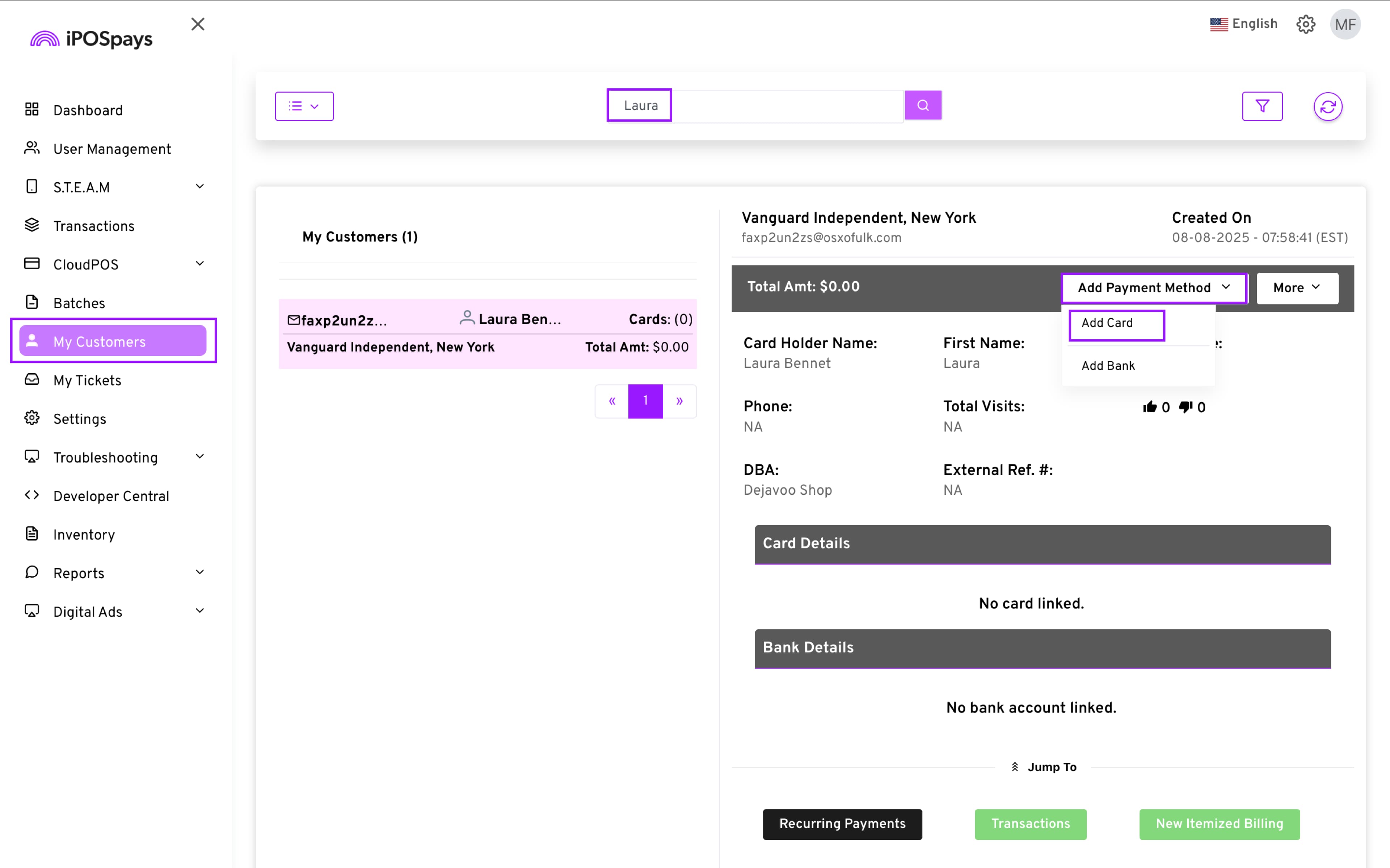 Supported Terminals: CloudPOS (Virtual Terminal)