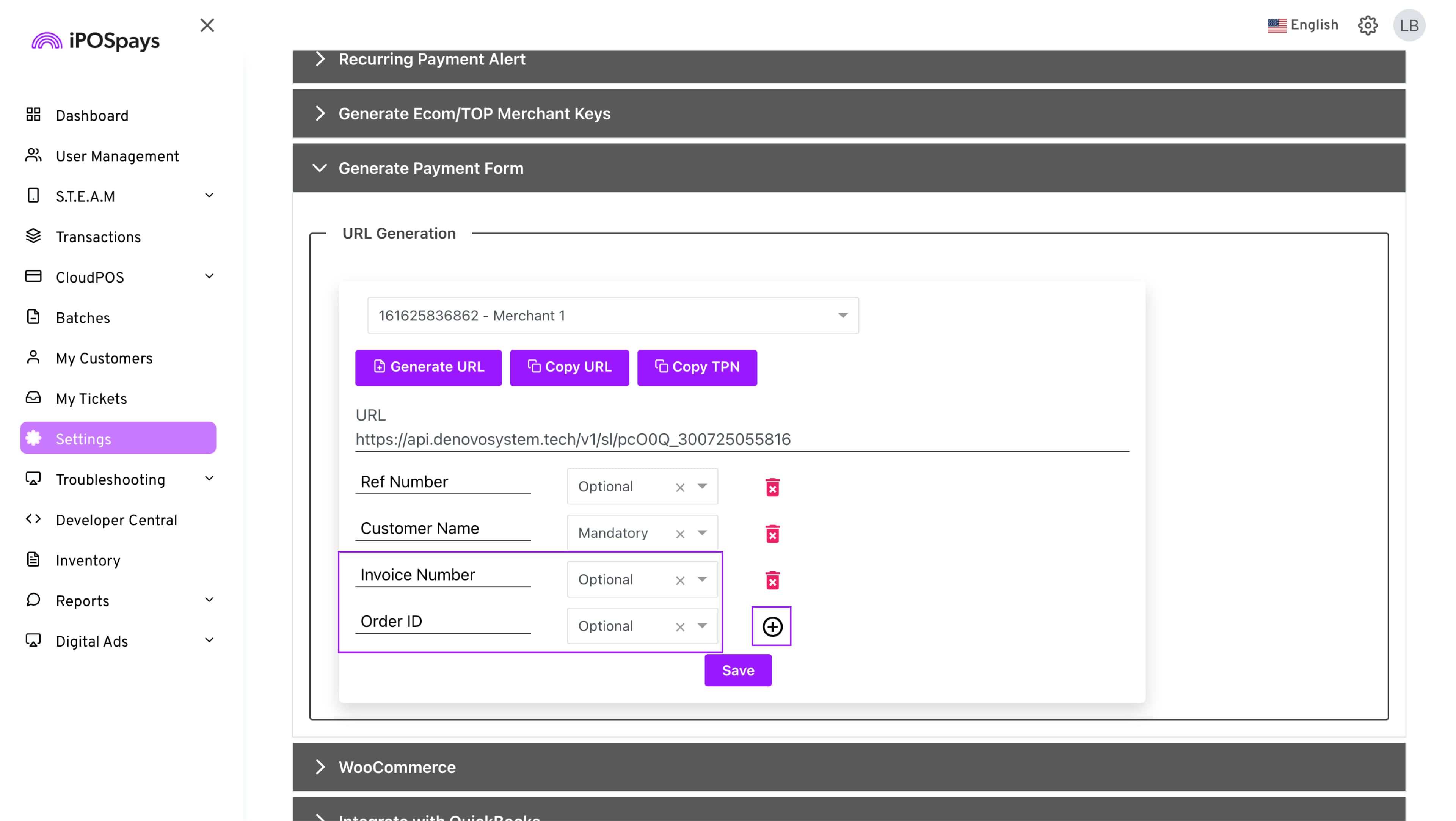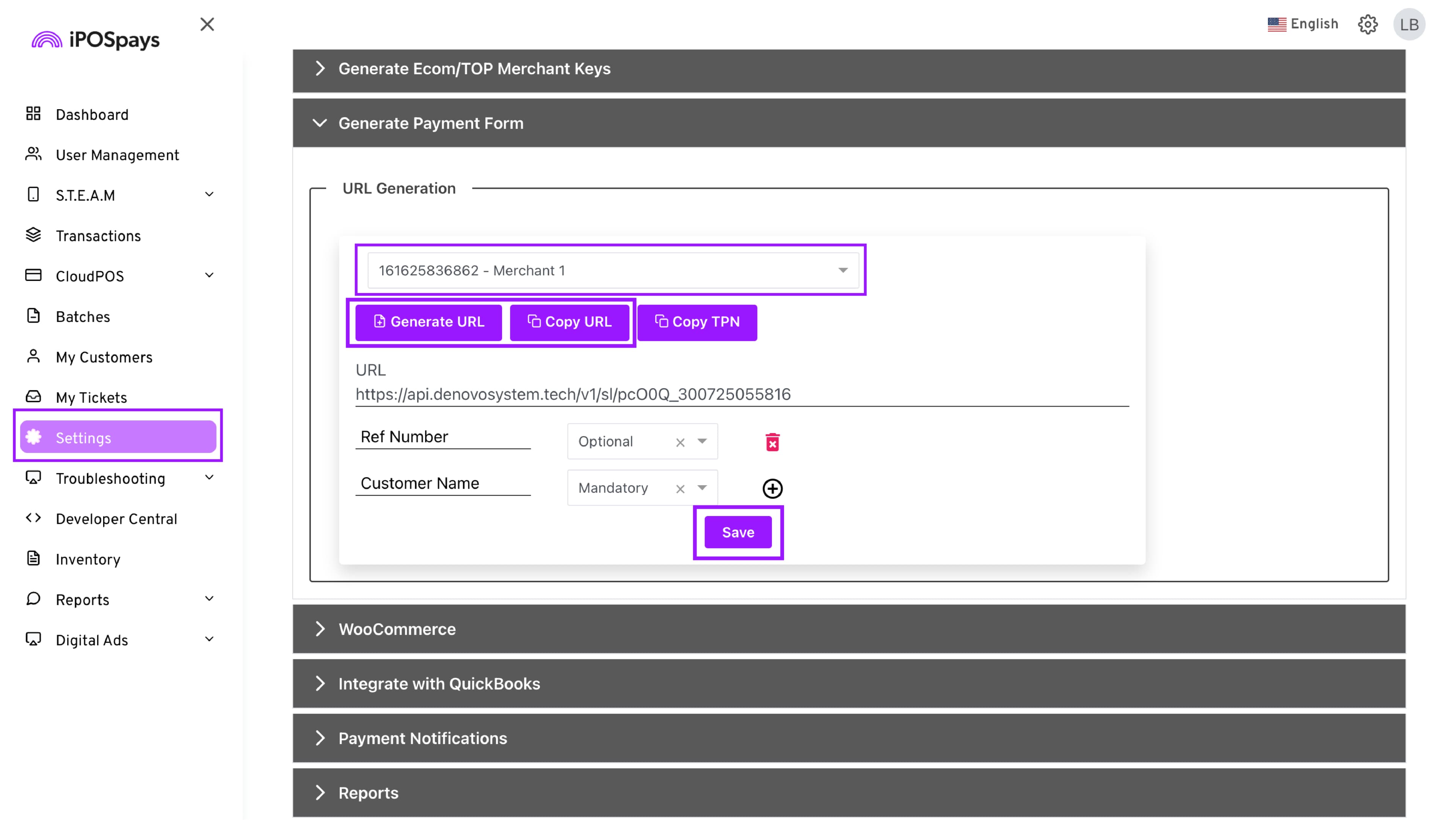 Navigate to Settings → Generate Payment Form → URL Generation.